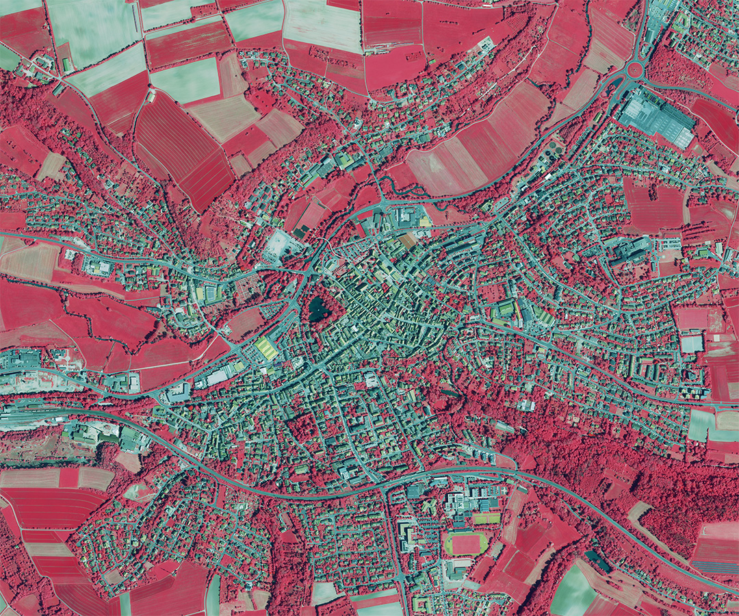 Aus der Luft sind die Christbaumplantagen als kleine Waldstücke besonders schön zu sehen. In Color-Infrarot-Luftbildern heben sich Tannenbäume eindrucksvoll hervor und zeigen die Vielfalt der Bayerischen Weihnachtsbaumkultur.